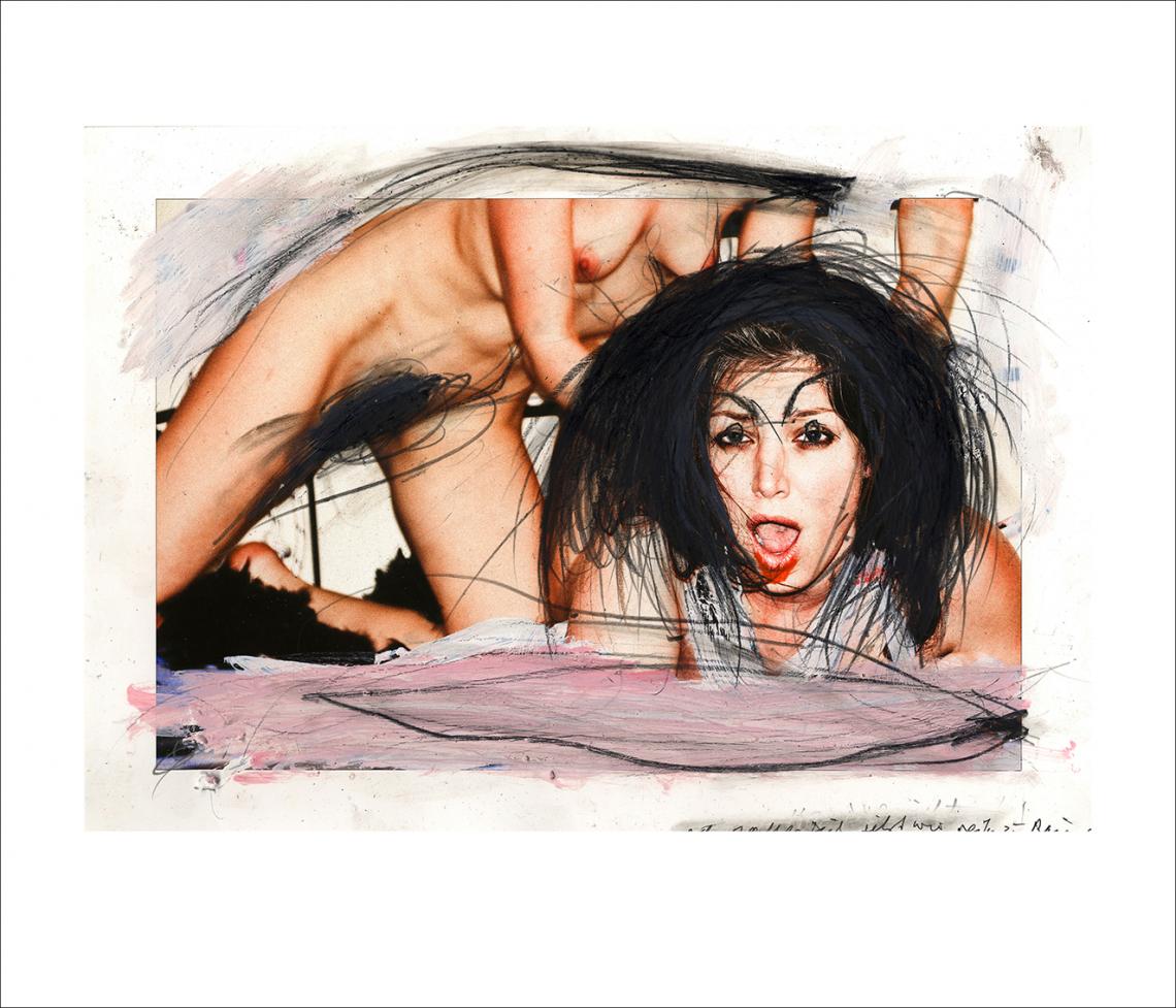 This work is from the 2011 Series “Unfinished into Death – Bondage”. The original photo was made by Rene Rietmeyer whereby Arnulf Rainer worked over his photo to “improve” it. Rene Rietmeyer and Arnulf Rainer worked together for over 4 years and created hundreds of works. The works that were made were often erotsch sexual or close to what some people would concider pornographic. From this series 12 works were published by Arnulf Rainer as part of a limited Edition PSAE #02 and exhibited at the Venice Biennale 2011, others were published in the Limited Edition Book: Arnulf Rainer “Unfinished into Death”.
