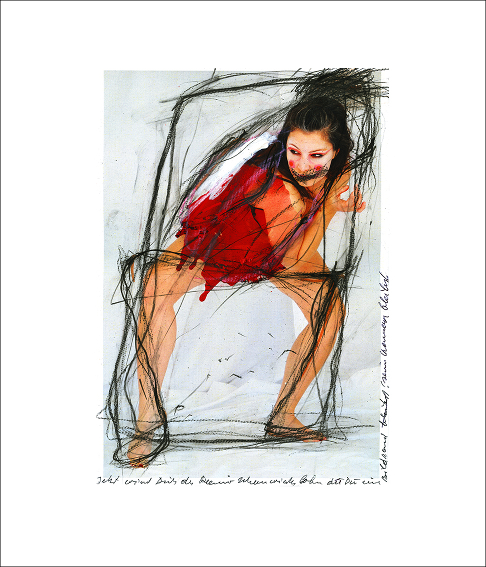 This work is from the 2011 Series “Unfinished into Death – Angels”. The original photo was made by Rene Rietmeyer whereby Arnulf Rainer worked over his photo to “improve” it. Rene Rietmeyer and Arnulf Rainer worked together for over 4 years and created hundreds of works. The works that were made were often erotsch sexual or close to what some people would concider pornographic. From this series 12 works were published by Arnulf Rainer as part of a limited Edition PSAE #03 and exhibited at the Venice Biennale 2011, others were published in the Limited Edition Book: Arnulf Rainer “Unfinished into Death”.