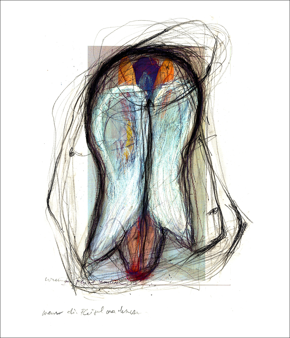 This work is from the 2011 Series “Unfinished into Death – Angels”. The original photo was made by Rene Rietmeyer whereby Arnulf Rainer worked over his photo to “improve” it. Rene Rietmeyer and Arnulf Rainer worked together for over 4 years and created hundreds of works. The works that were made were often erotsch sexual or close to what some people would concider pornographic. From this series 12 works were published by Arnulf Rainer as part of a limited Edition PSAE #03 and exhibited at the Venice Biennale 2011, others were published in the Limited Edition Book: Arnulf Rainer “Unfinished into Death”.