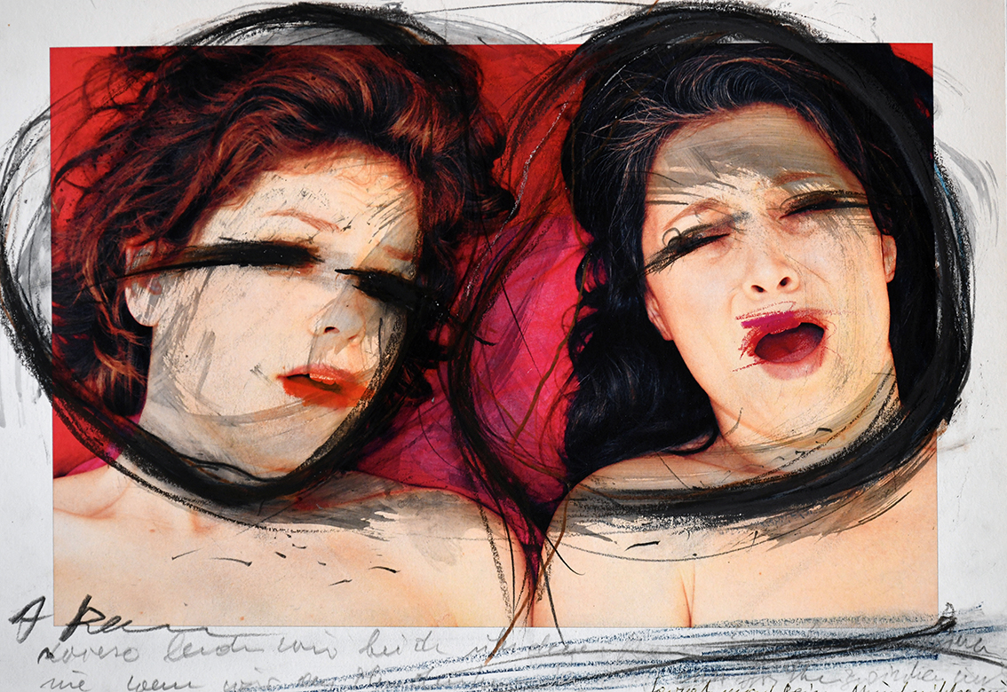 This work is from the 2013 Series “Unfinished into Death – Orgasms”. The original photo was made by Rene Rietmeyer whereby Arnulf Rainer worked over his photo to “improve” it. Rene Rietmeyer and Arnulf Rainer worked together for over 4 years and created hundreds of works. The works that were made were often erotsch sexual or close to what some people would concider pornographic. The work was exhibited at the Venice Biennale.