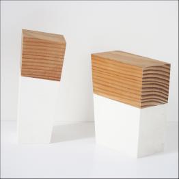 Typical for the sculptures of Beltjens is the preference for small and medium-sized formats and their presentation in multi-part floor installations. From 1997 to 1999, she created works in steel with clear allusions to architectonic forms. Later, in 2002 and 2003, she began working with combinations of material, such as wood combined with plaster.