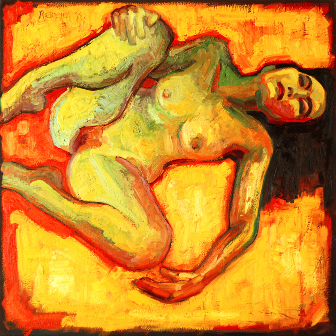 This painting is an oil on canvas from 1996 measuring 100x100 cm.